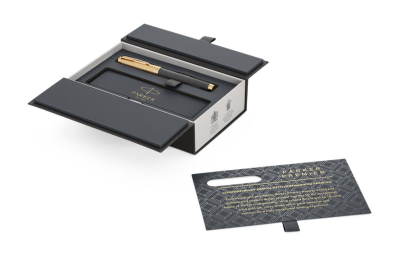 Ручка роллер Parker Premier Storm Grey GT от официального дилера Parker в Химках. Вы можете дополнительно заказать гравировку, которая подчеркнет Вашу оригинальность и придаст памятность статусному подарку. Все ручки Паркер поставляются в фирменном футляре.